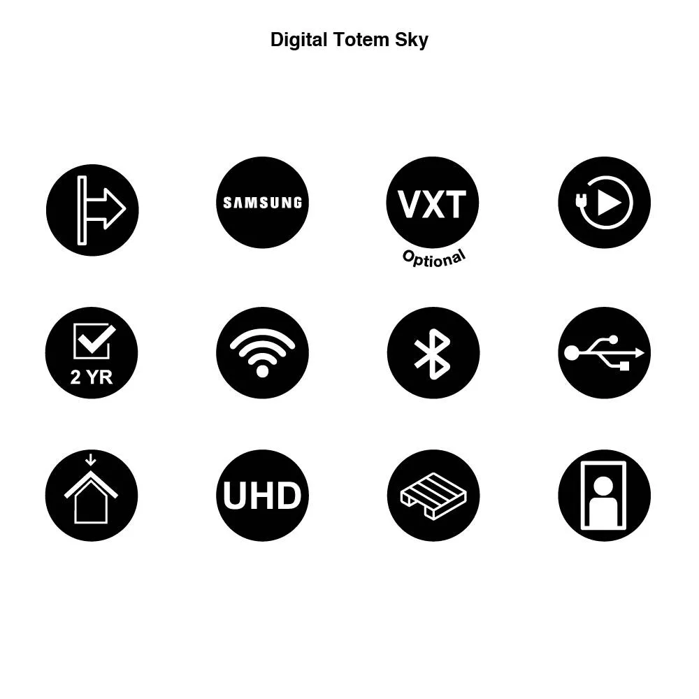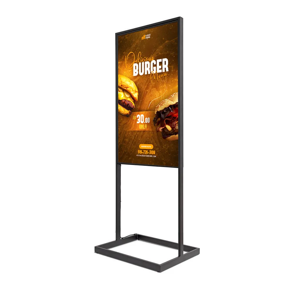 Jednostranný digitální stojan určený pro interiérové použití. Konstrukce je navržena pro stabilní instalaci ve veřejných i firemních prostorách. Reprezentativní černé provedení.