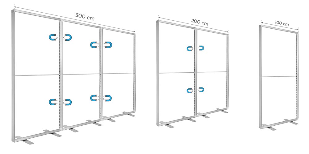 Systém má integrované LED žárovky a kromě jednoduchého spojení 4 prvků konstrukce nevyžaduje dodatečnou montáž. Nasazovací nohy zaručují stabilitu systému a několik desítek LED žárovek úžasný světelný efekt prezentované grafiky. LED box je celý vyroben z eloxovaného hliníku a je oboustranný.