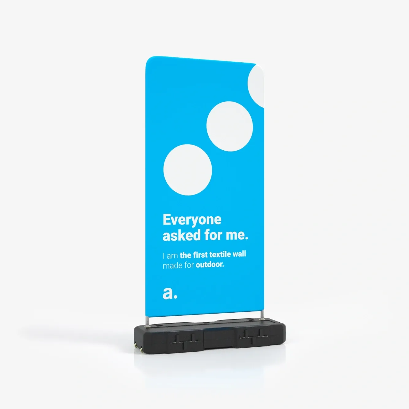 Venkovní reklamní stěna Shape s vodou plnitelnou základnou nabízí stabilní a mobilní řešení pro outdoor eventy. Rychlá montáž bez nářadí a snadná výměna textilní grafiky.