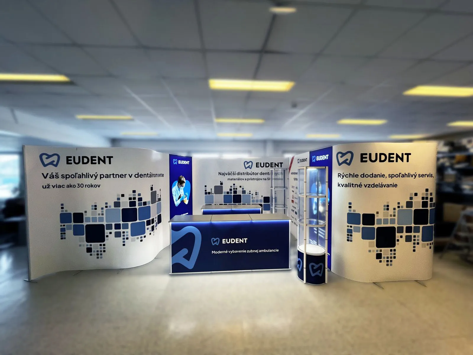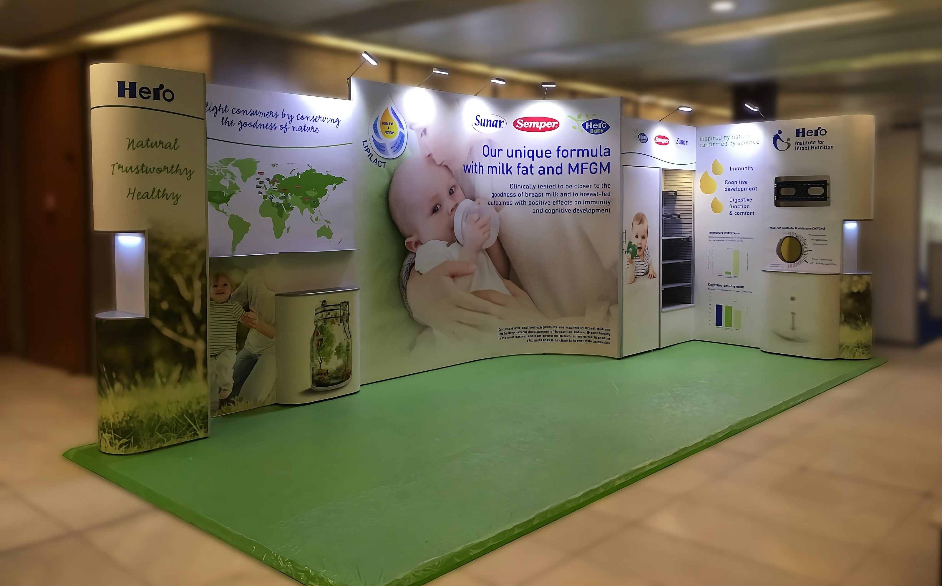Díky patentovanému systému zámků a magnetických spojů zvládne montáž i jeden člověk. Výstavní stěny i celé stánky sestavíte během několika minut, bez nutnosti používat nářadí. To oceníte především při častých prezentacích a veletrzích.